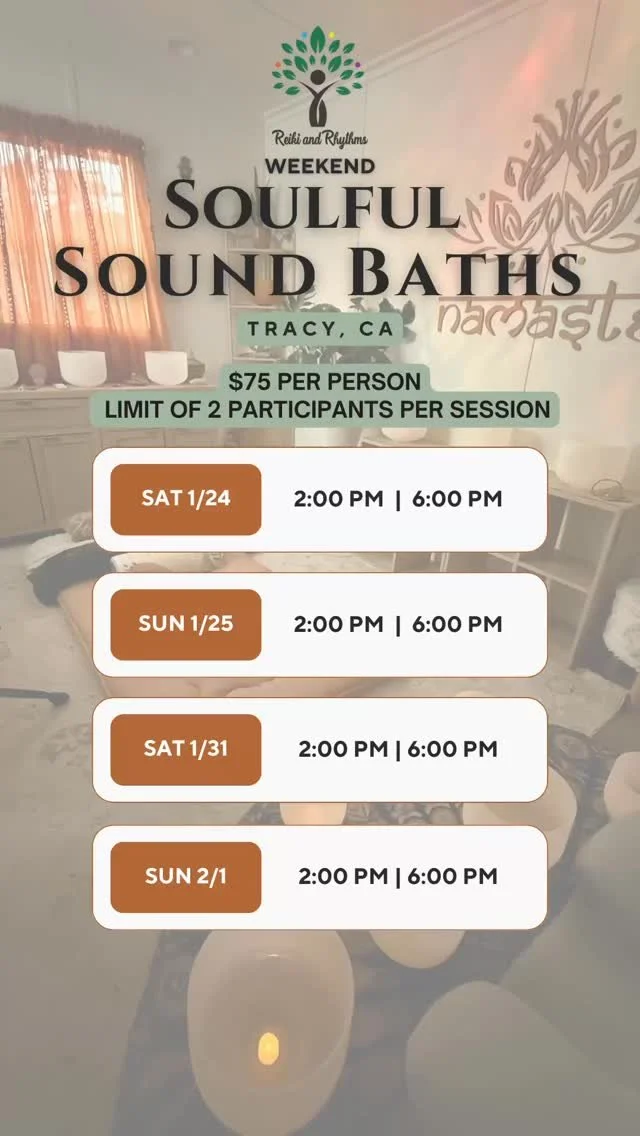 Reiki and Rhythms is a home-based wellness studio in Tracy, California, offering heart-centered healing through sound baths and Reiki energy therapy. Our serene space was created with intention—to be a peaceful sanctuary where you can relax, release, and realign.